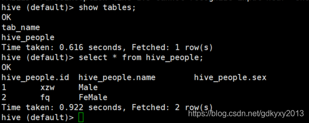 使用如下命令查看导入的结果: