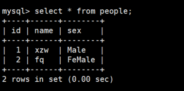 insert into people(name, sex) values('xzw', 'Male');