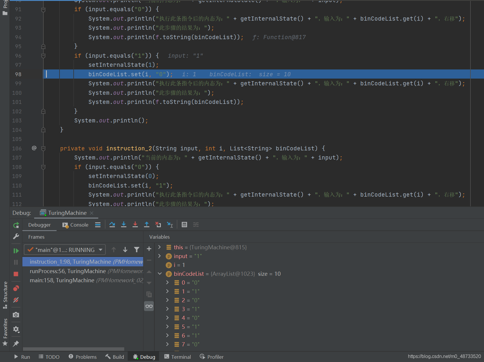 tm.runProcess(tm.getBinCode()); // 运行图灵机