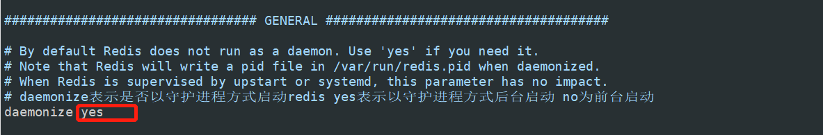 首先,修改 redis.conf 配置文件,将daemonize 守护线程启动方式开启
