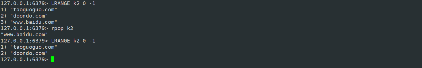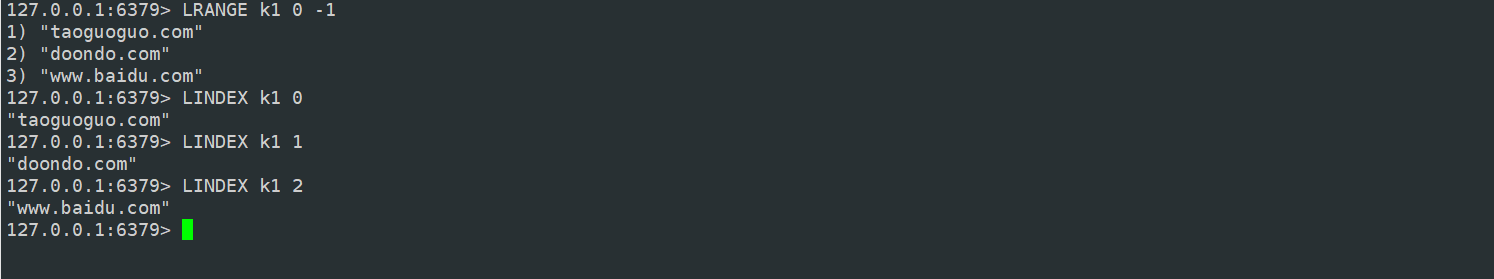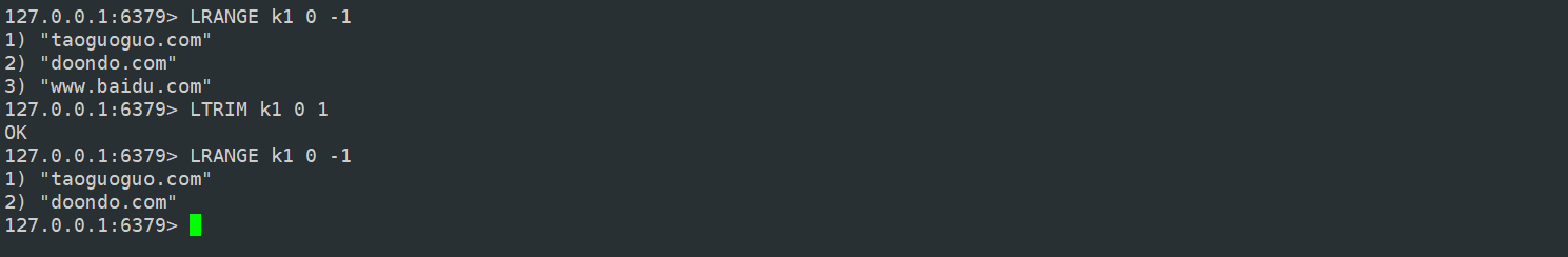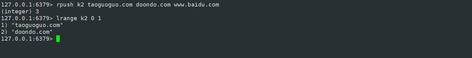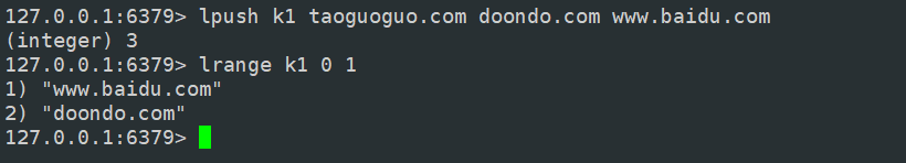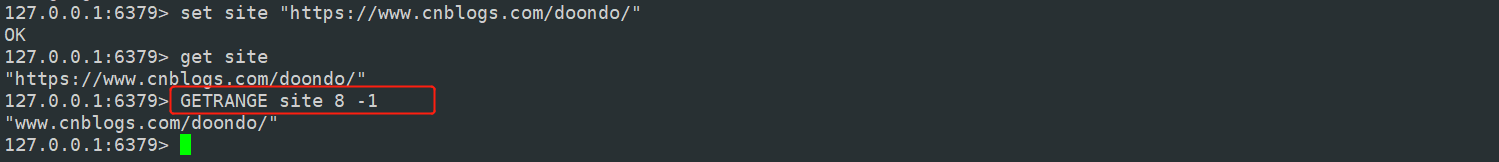 getrange 可以用来返回 key 对应的 value 的子串,这有点类似于 Java 里边的 substring。这个命令第二个和第三个参数就是截取的起始和终止位置,其中,0表示起始字符串,-1 表示最后一个字符串,-2 表示倒数第二个字符串,以此类推...