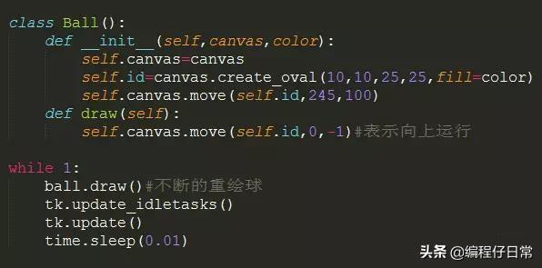 我们刚才是把self.canvas.move(self.id,0,-1)写死0,-1,表示x坐标不动,y坐标不断的-1也就是球在向上运动