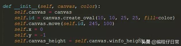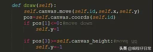 现在我们把这两个值设成两个变量self.x,self.y,当我们的球运动到上边界的时候,就把self.y加1,也就向下运行,