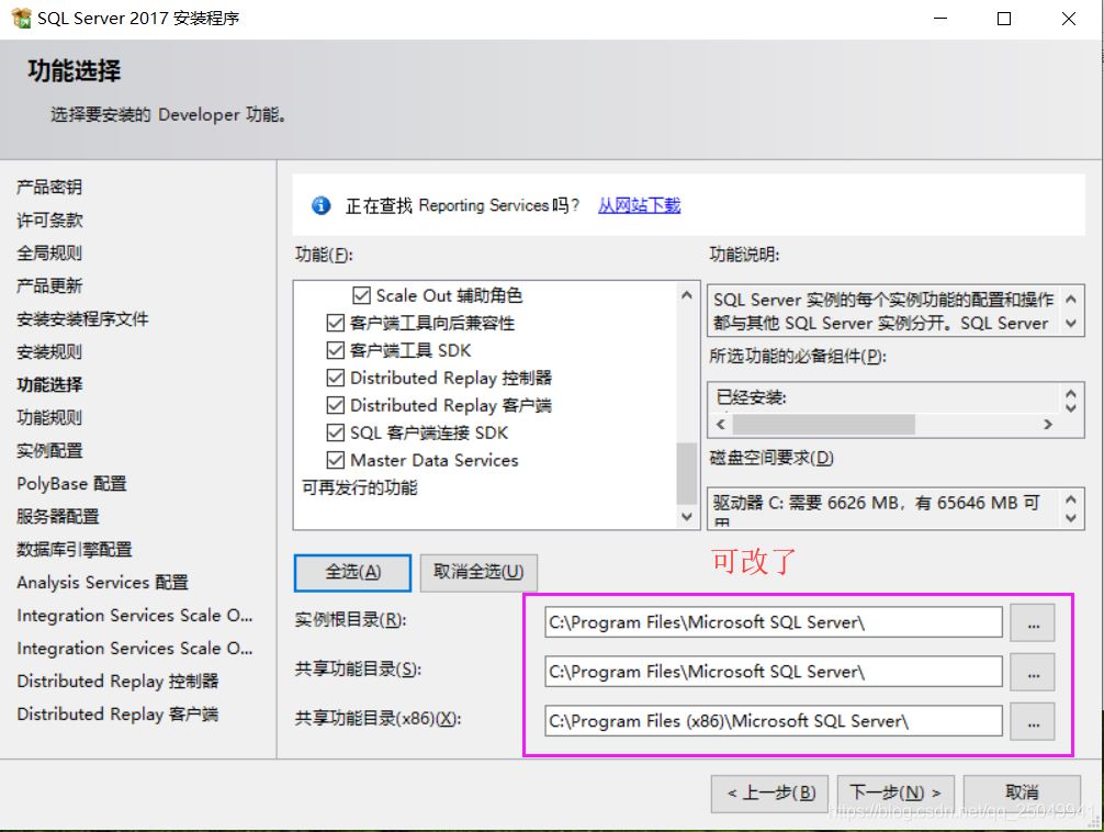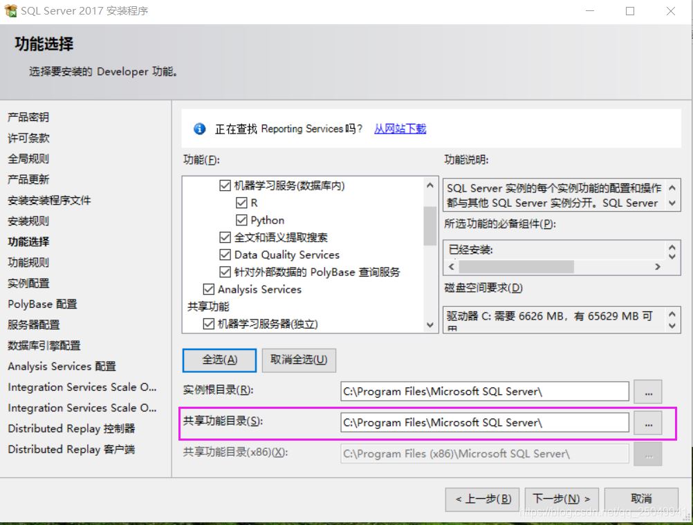 sqlserver2017共享功能目录路径不可改的解决方法