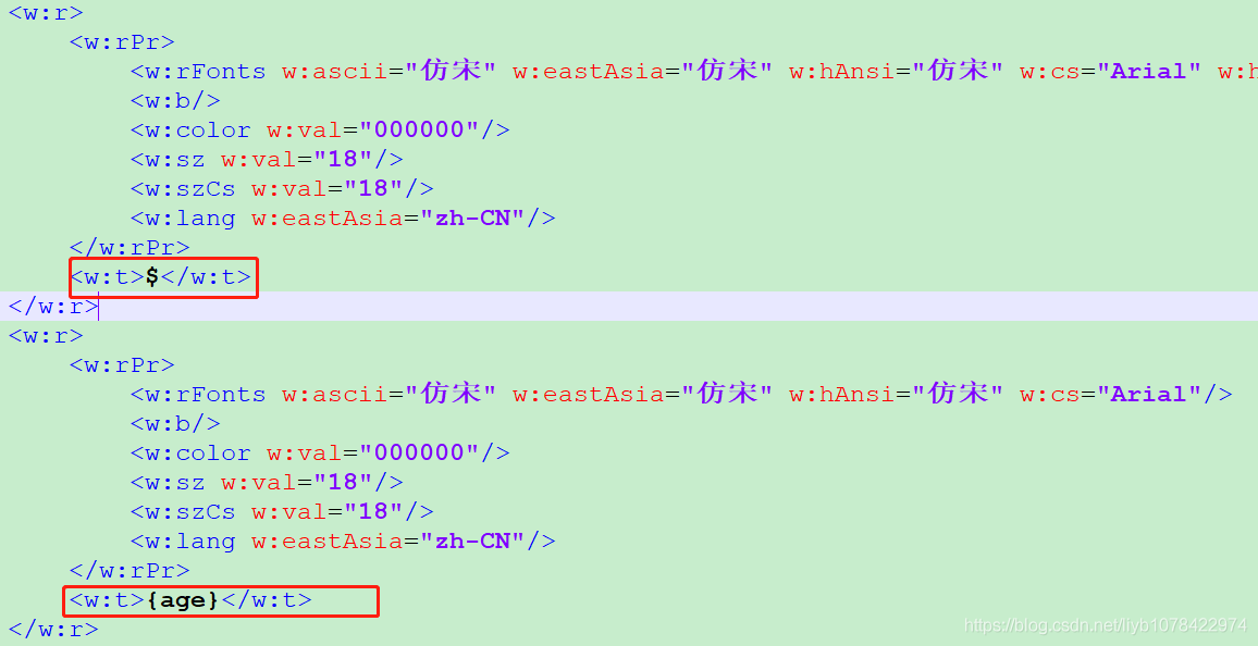 4、word_mode.ftl文件中,生成的标签名可能被样式隔开,需要手工处理下,如图3(处理前),图4(处理后)
