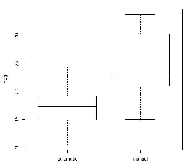 boxplot(mtcars$mpg~mtcars$am,ylab='mpg',names = c('automatic','manual))