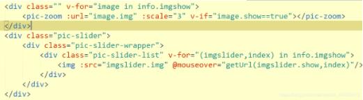 shopitem.vue的template(HTML),上面是大图,下面是小图,鼠标滑动到小图上,触发getUrl事件(参数是小图的show属性,索引):