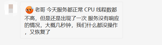 从截图看只是线程爆高,没看到 cpu 爆高哈😂😂😂,有意思的是这位朋友说他: 一直在手动回收 ,不知道为啥看着特别想笑,但笑着笑着就哭了。