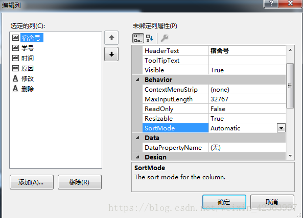 中间显示是一个DataGridView,编辑好列和id,SortMode选择Automatic,意思是所有列自动铺满DataGridView,如图2所示。