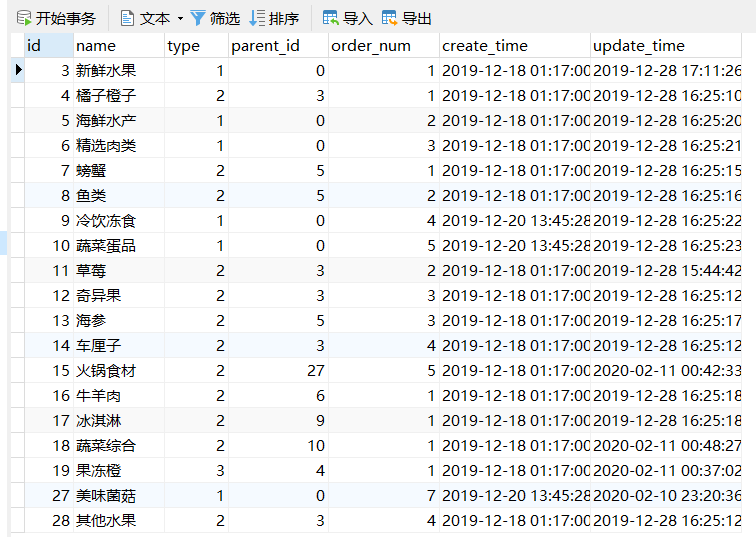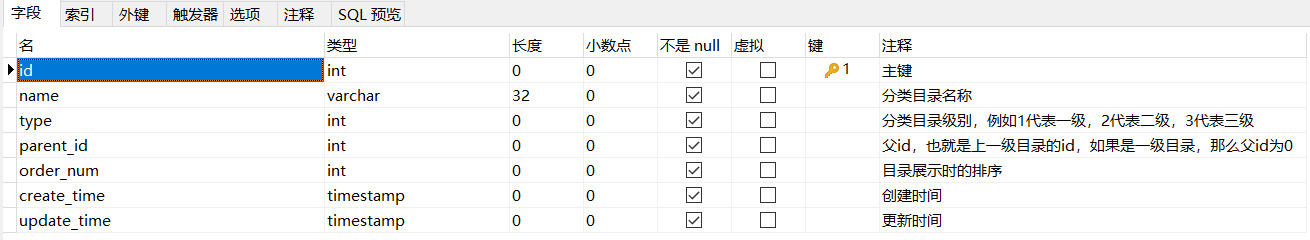 id, `name`, `type`, parent_id, order_num, create_time, update_time
