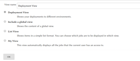 在“创建新视图”页面上,为视图命名,然后选择“部署视图”类型,然后单击“确定”。