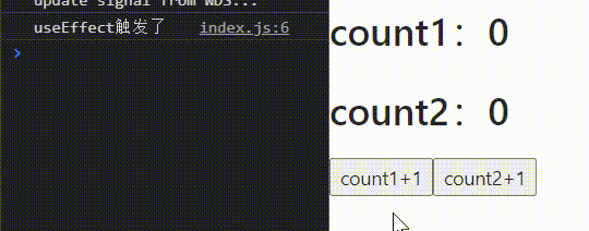 将上述代码useEffect第二个参数传入需要绑定的状态,可绑定多个: