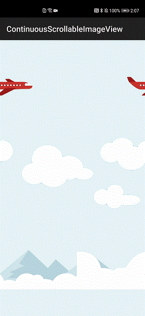 图1中的动画效果需要实例化3个ContinuousScrollableImageView对象分别代指包含飞机、云、山三种图像。