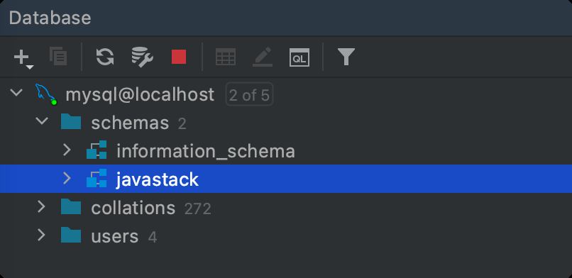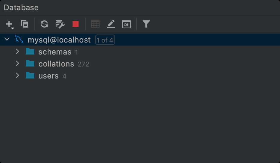 保存退出后,可以在 Database 面板看到本地 MySQL 数据库已连接。