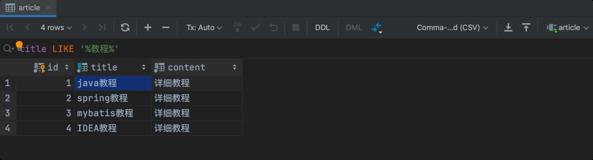 找到 article 表中的一条记录,双击进入结果集: