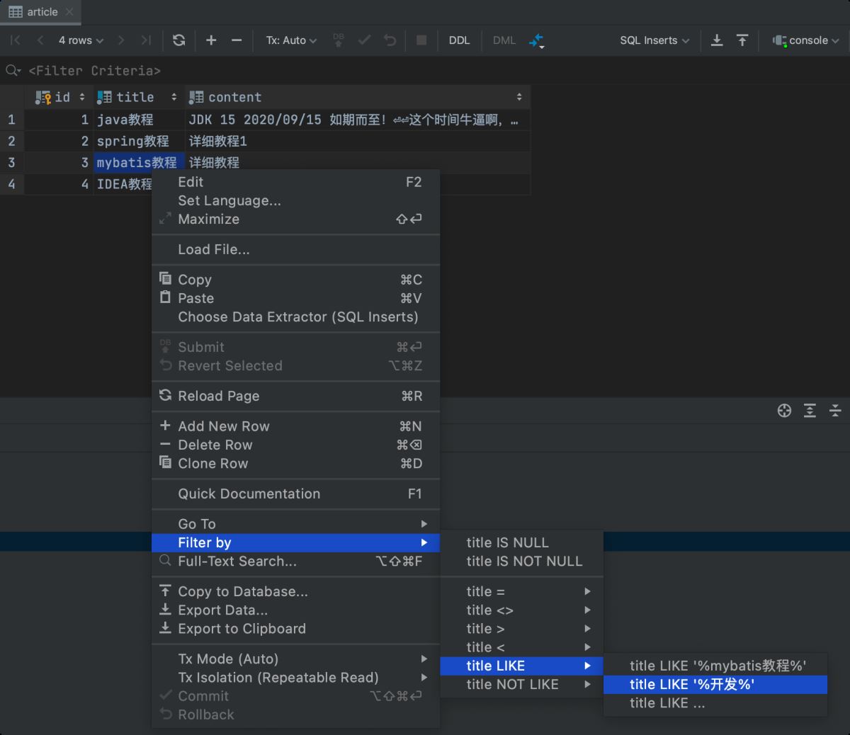 到此这篇关于IDEA 自带的数据库工具真的很牛逼(收藏版)的文章就介绍到这了,更多相关idea数据库工具内容请搜索自学编程网以前的文章或继续浏览下面的相关文章希望大家以后多多支持自学编程网!