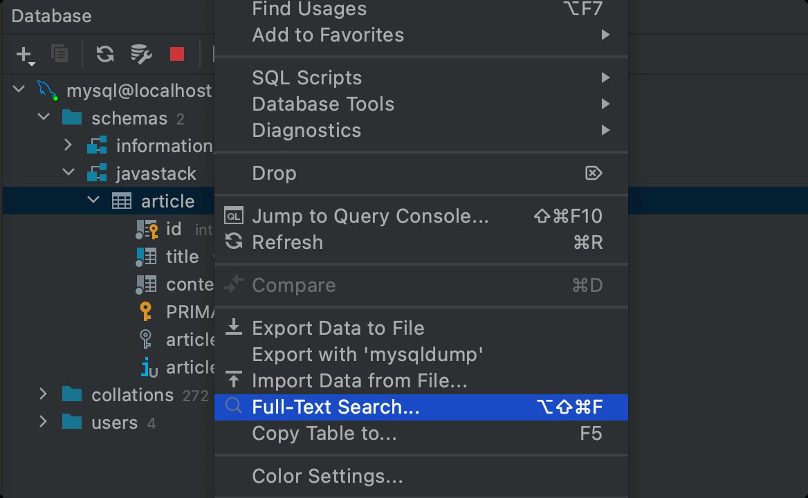 还能进行全文搜索,右键表名开始: