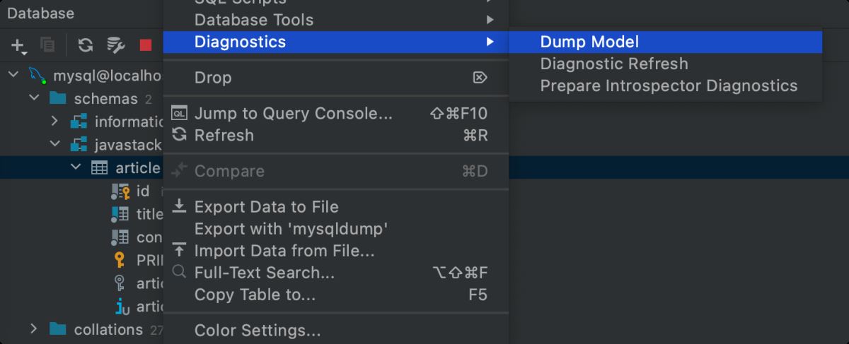 右击对应的数据库表名称,可以导出数据库表模型: