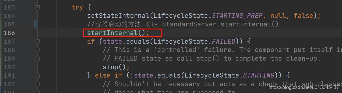 2)ContainerBase中的startInternal()方法 核心代码,从这开始启动StandardContext容器