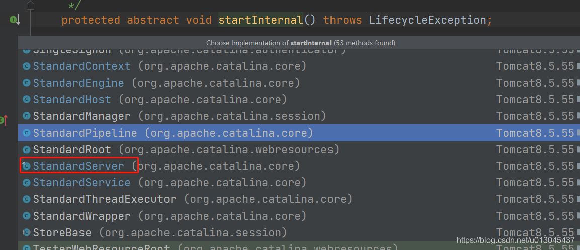 说明:StandardServer 、StandardService、StandardEngine等容器都是继承LifecycleBase