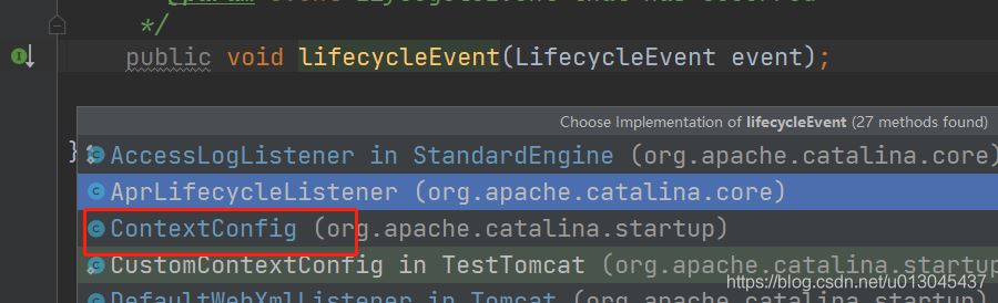 //通过反射得到的一定是LifecycleListener的一个实现类,进入getConfigClass得到实现类(org.apache.catalina.startup.ContextConfig)