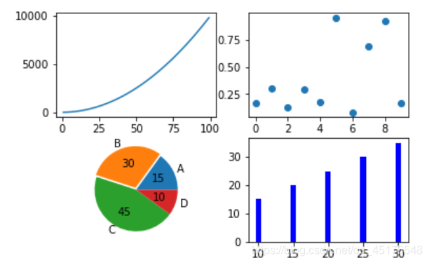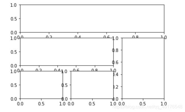 plt.subplot2grid((3,3),(0,0),colspan=3) """""" plt.subplot2grid((3,3),(1,0),colspan=2) """""" plt.subplot2grid((3,3),(1,2),rowspan=2) """""" plt.subplot2grid((3,3),(2,0)) """""" plt.subplot2grid((3,3),(2,1)) plt.show()