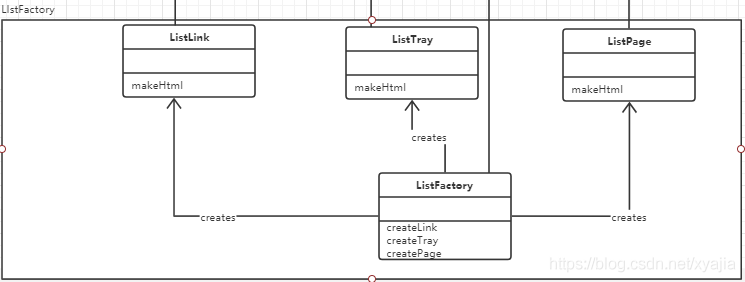 ConcreteProduct角色负责实现抽象产品角色的接口,示例程序中,由ListLink,ListTray,ListPage类扮演此角色