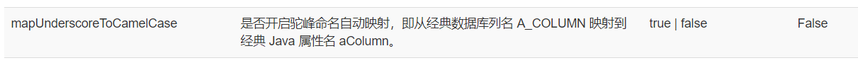 <!-- 是否开启驼峰命名自动映射,即从经典数据库列名 A_COLUMN 映射到经典 Java 属性名 aColumn。 -->