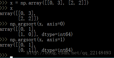 可以发现,argsort()是将X中的元素从小到大排序后,提取对应的索引index,然后输出到y