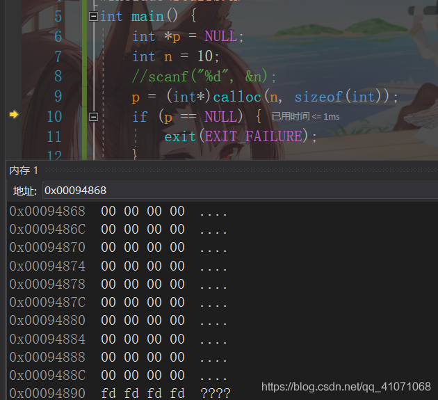 所以如何我们对申请的内存空间的内容要求初始化,那么可以很方便的使用calloc函数来完成这个需求。