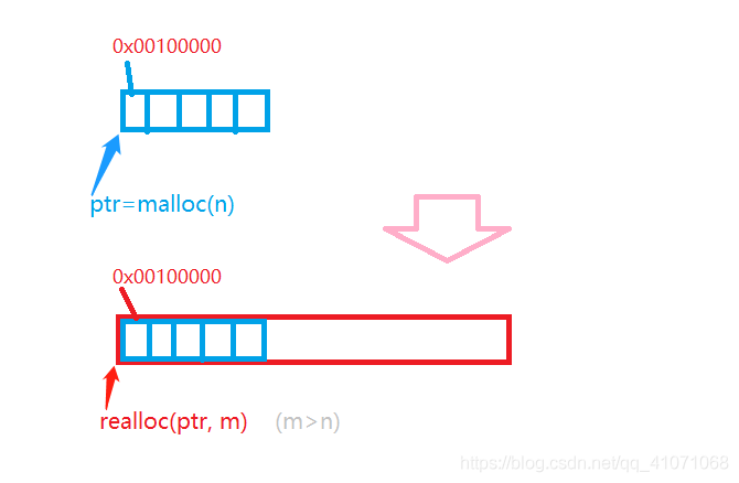 当第二种情况时, 若申请新的内存空间成功, 会将ptr所指向的内存中的内容拷贝到新的内存空间中, ptr所指向的内存会被释放, 返回新得内存地址, 若不成功 ,ptr 所指内存不会被释放, 函数返回NULL