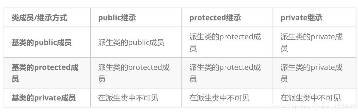 3. 在实际运用中一般使用都是public继承,不提倡使protetced/private继承,因为protetced/private继承下来的成员都只能在派生类的类里面使用,实际中扩展维护性不强;