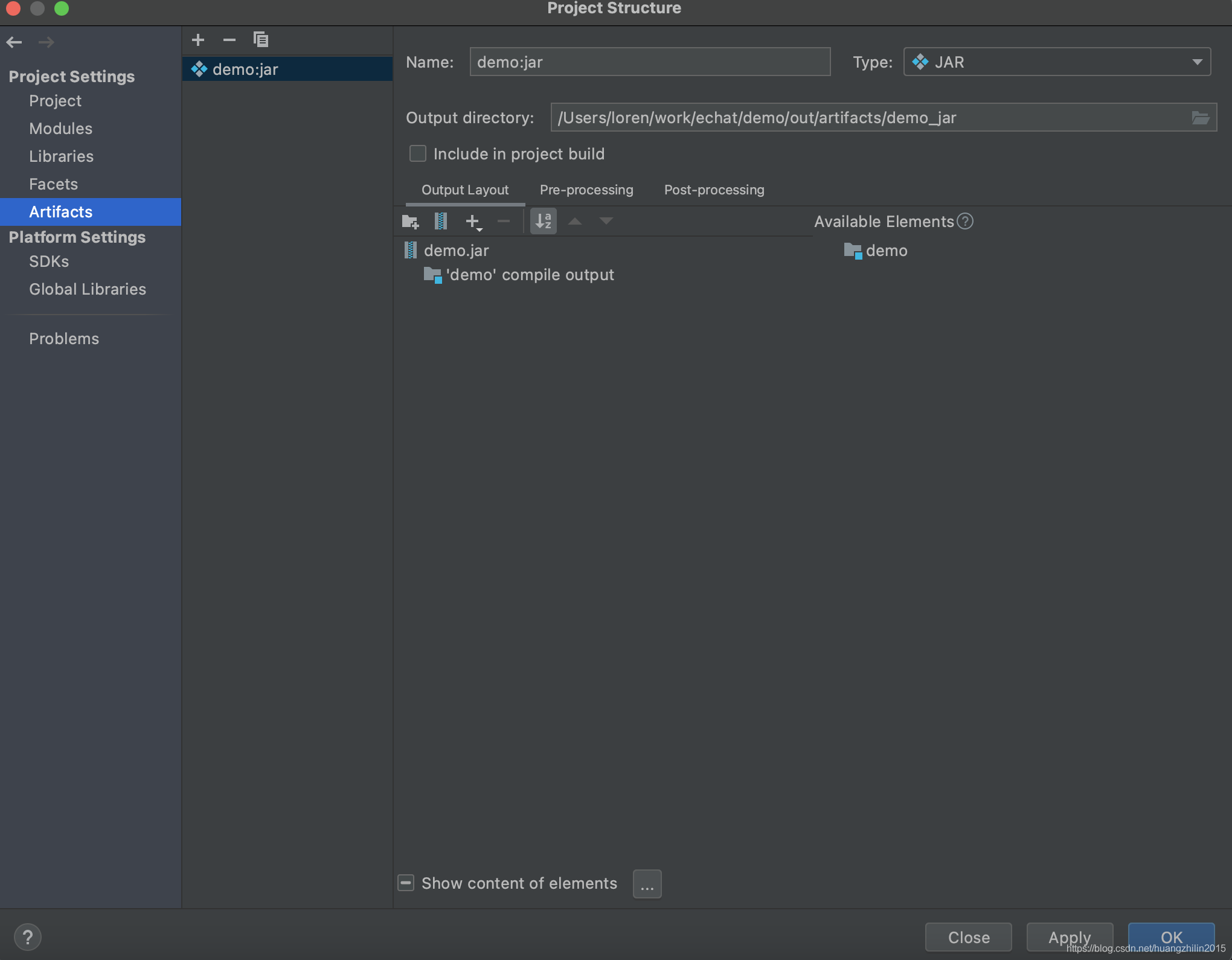 其中Output directory为最终jar包的输出路径,点击OK,完成配置。