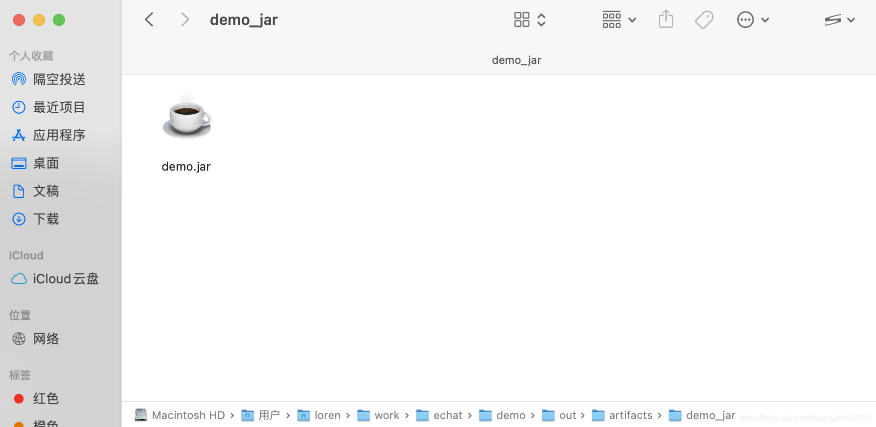 构建完成之后,到我们的jar包输出路径就能看到我们的jar包了: