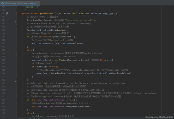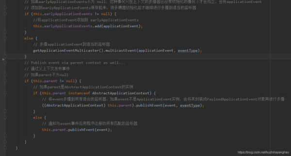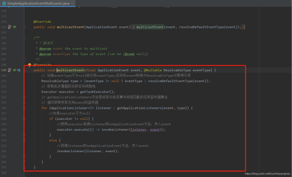 //1. 获取到事件广播器,发布事件         getApplicationEventMulticaster().multicastEvent(event);