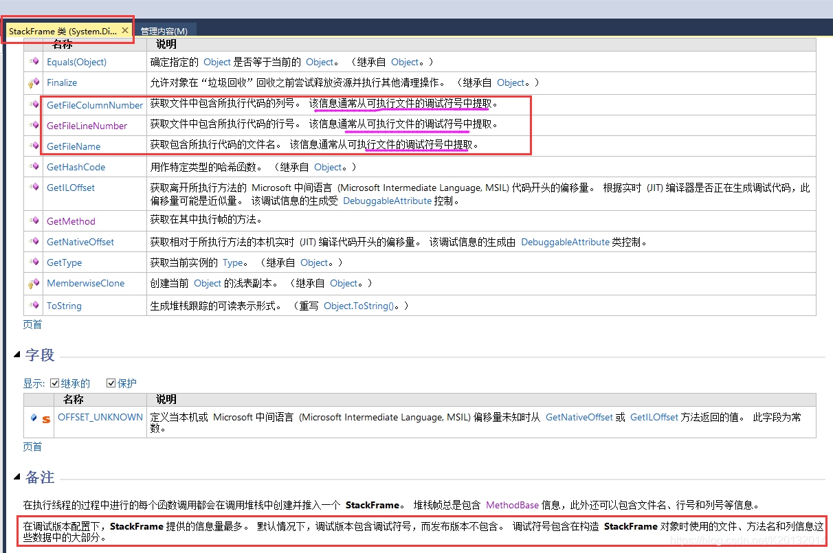 StackFrame sf = stack.GetFrame(i); //获取当前帧信息