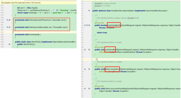 在ThreadPoolExecutor类中有两个比较重要的方法引起了我的注意:beforeExecute和afterExecute