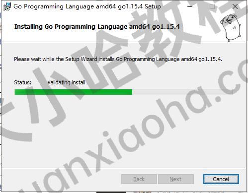 点击继续,等待Go安装完成。