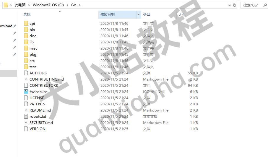 安装完成后,我们可以到 C:\Go\ 目录下,看看目录结构: