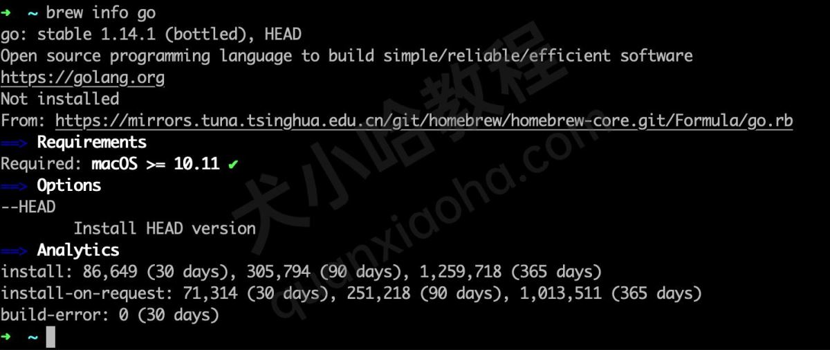 另外,也可以先通过 brew info go查看一下版本信息。