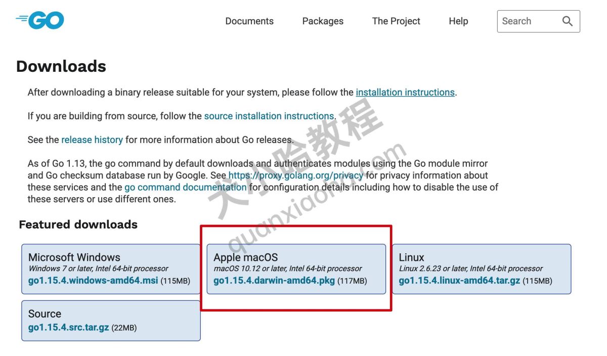 官网下载 Go 语言 pkg 包来安装