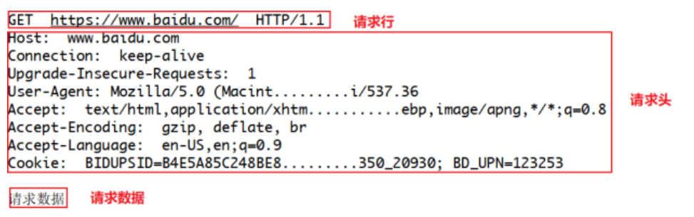 就像打电话一样,HTTP到底和服务器说了什么,才能让服务器返回正确的消息的,其实客户端的请求告诉了服务器这些内容:请求行、请求头部、空行、请求数据