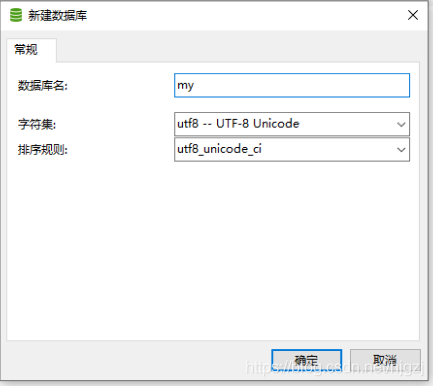 输入库名、选择字符集和排序规则,点确定