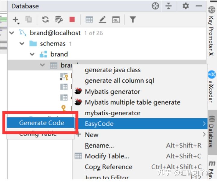 右击表名->Easy Code->Generate Code