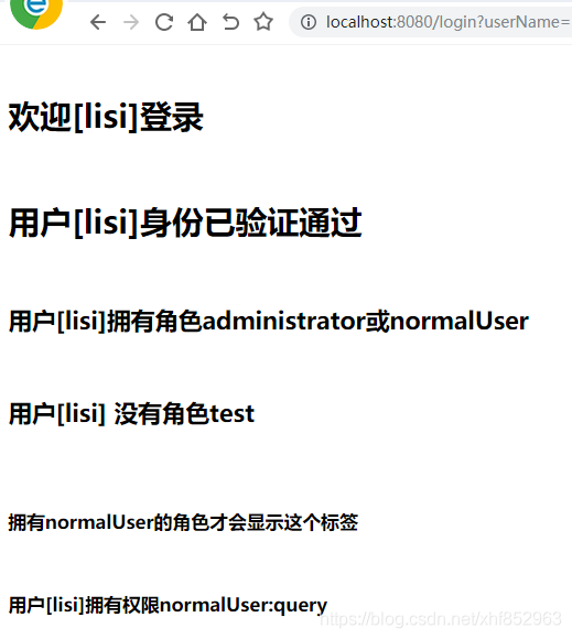 在浏览器输入:http://localhost:8080/login?userName=zhangsan&password=123456 内容如下所示: