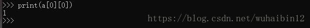 该下标被包裹在一个tuple和一个list中。我们可以用a[0][0]轻松取出来: