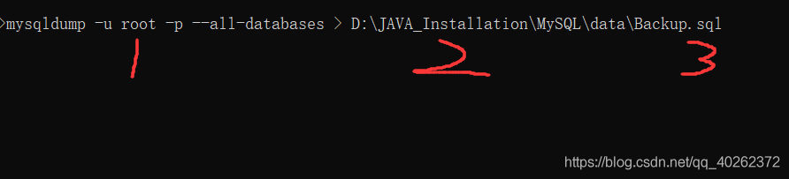 mysqldump -u root -p --all-databases > D:\JAVA_Installation\MySQL\data\Backup.sql