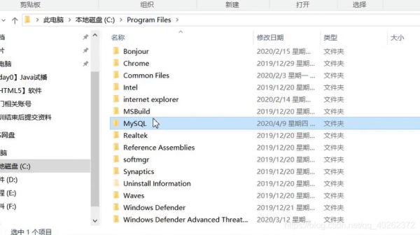 2.删除C盘文件,C:\Program Files或者C:\Program Files (x86)里的MYSQL文件(如果没有就下一步)