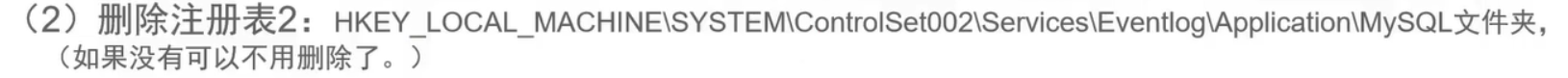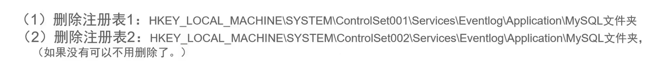 (1)删除注册表1:HKEY_LOCAL_MACHINE\SYSTEM\ControlSet001\Services\EventLog\Application\MySQLD Service