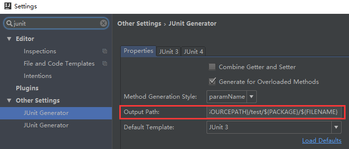 修改 Output Path 为:${SOURCEPATH}/../../test/java/${PACKAGE}/${FILENAME}